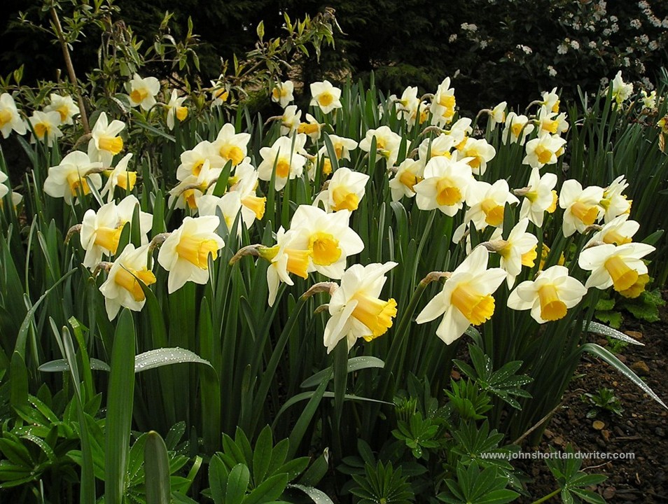 It is a remarkable fact that if you Google search daffodils in poetry, the great bulk of prompts are the same: Wordsworth’s I Wandered Lonely as a Cloud. Yes, it is a great poem and one I learnt as a very young child at school, now so very many years ago, but how has it come to dominate our thinking? Like many others, I now only remember the first line and the last, but how lovely it is to imagine William walking in the warm spring sunshine of 1807 through the vales of the Lake District with his sister Dorothy. Perhaps they had been commenting on the few cotton-wool clouds that drifted across the sky before suddenly coming across a host of golden daffodils.
